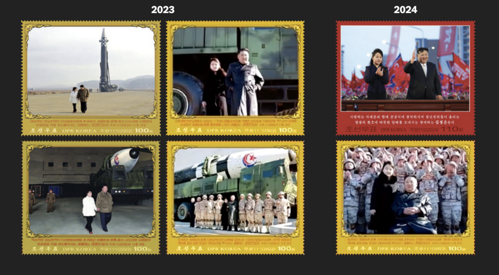 Severná Kórea začala vydávať poštové známky, na ktorých sú Kim Čong-un a jeho dcéra zobrazení spolu.