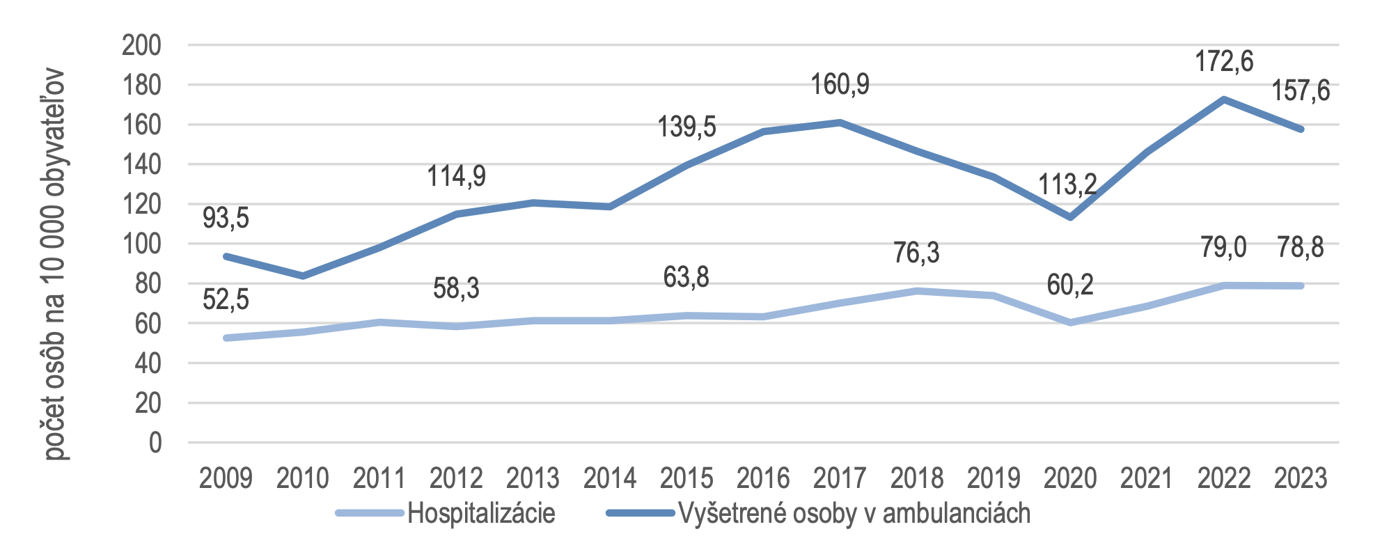 Aj počet ambulantne vyšetrených a hospitalizovaných mladých ľudí od 15 do 19 rokov v rámci psychiatrickej starostlivosti od vypuknutia pandémie v roku 2020 až do roku 2023 stúpal. Správa NKÚ to pripisuje nedostatočnej prevencii a podpore na školách.