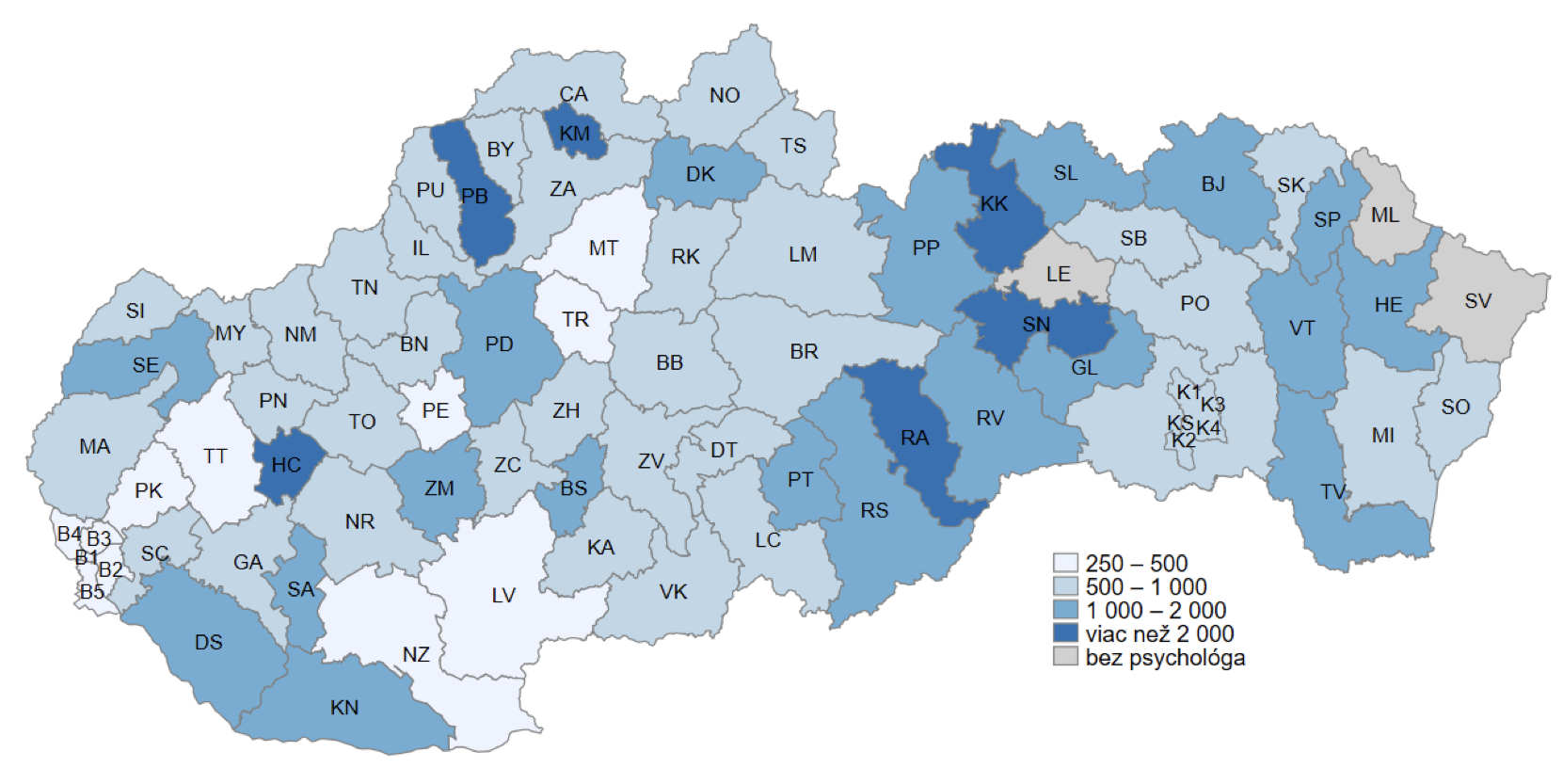 Na jedného školského psychológa pripadalo na Slovensku v roku 2024 v priemere 710 detí. Odborníci odporúčajú, aby ich bolo najviac 500. Túto hranicu splnilo len 13 okresov.