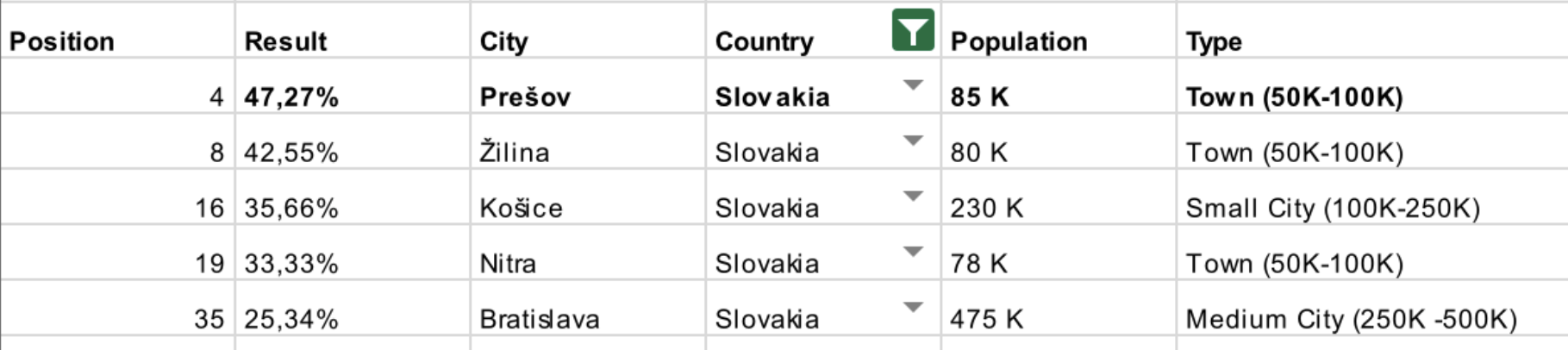 „V prieskume sme mali päť slovenských miest. Prebiehal dopytovaním sa užívateľov, nejde o meranie na základe voľne otvorených dát,“ spresňuje Huk.