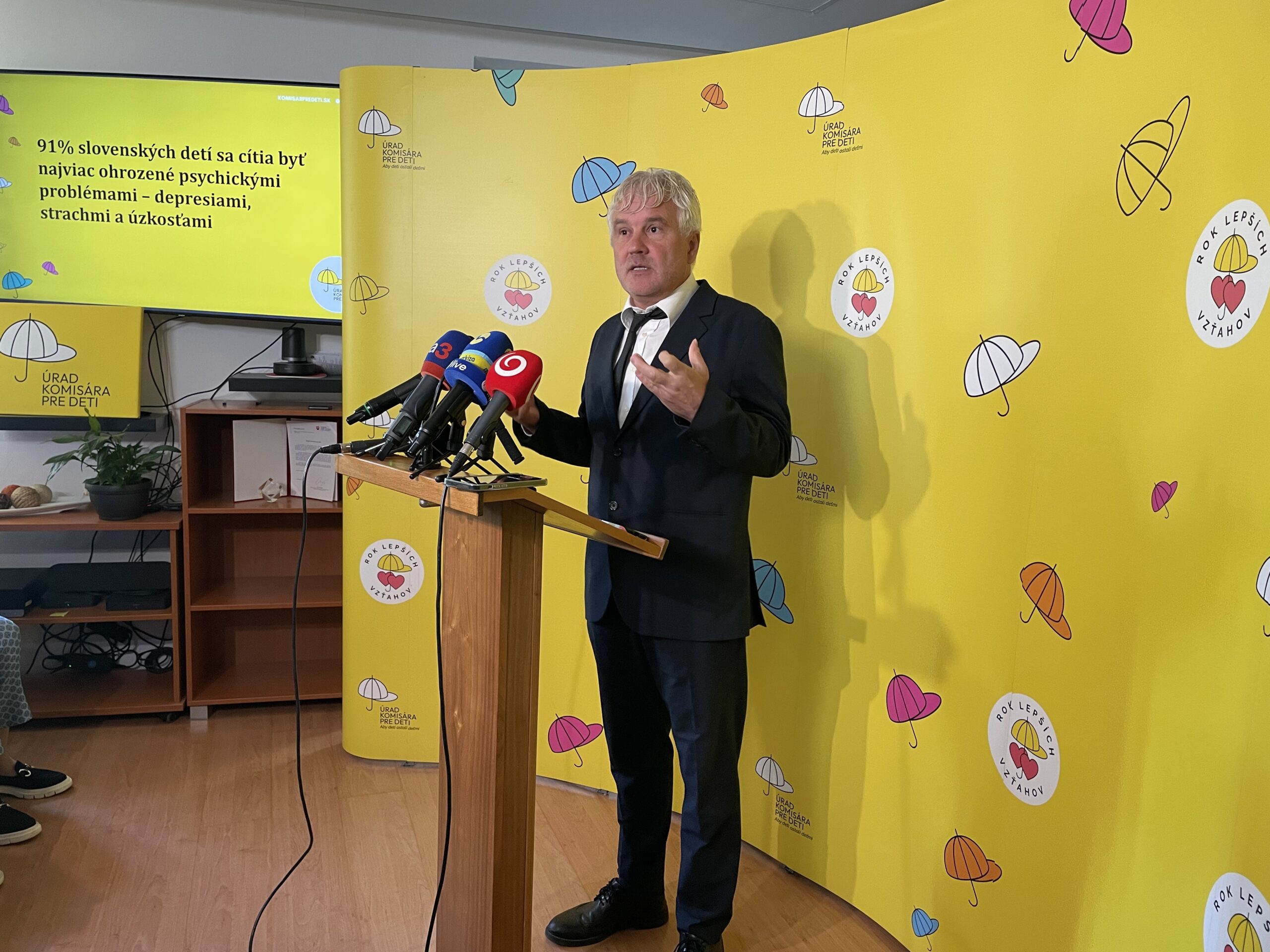 Komisár pre deti Jozef Mikloško upriamil pozornosť na výsledky výskumu ich úradu, v ktorom až 91 percent slovenských detí uviedlo, že sa cítia najviac ohrozené psychickými problémami, ako sú depresie, strach a úzkosť, ktoré pramenia a súvisia s častým pozeraním mobilných, počítačových či obrazoviek tabletov.