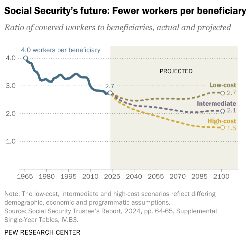Spomaľujúci sa rast americkej populácie sa čoskoro môže stať veľkým rozpočtovým problémom. V roku 1965 pripadali na jedného príjemcu sociálneho zabezpečenia približne štyria pracovníci. Dnes sú to menej ako traja. Do konca storočia by toto číslo mohlo klesnúť byť na menej ako dvoch.