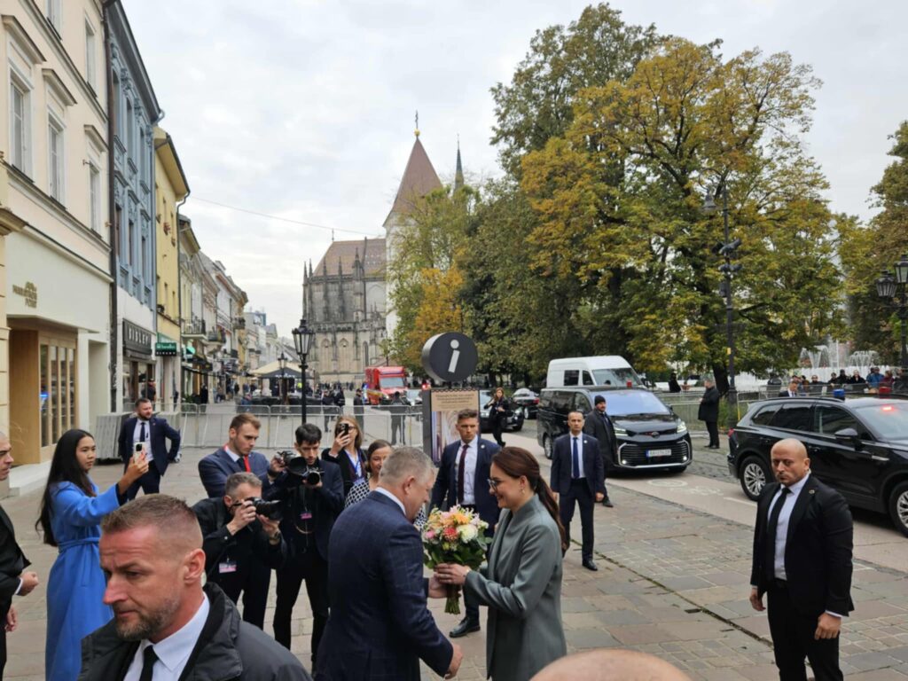 Premiér Robert Fico (Smer) dorazil do Historickej radnice zadným vchodom. Ukrajinskú predsedníčku vlády Juliju Svyrydenkovú, ktorá mala v Košiciach zo štvrtka na piatok prenocovať, vítal s kyticou kvetov. Po oficiálnom zvítaní zamierili do rokovacej sály, ministri rokovali samostatne.