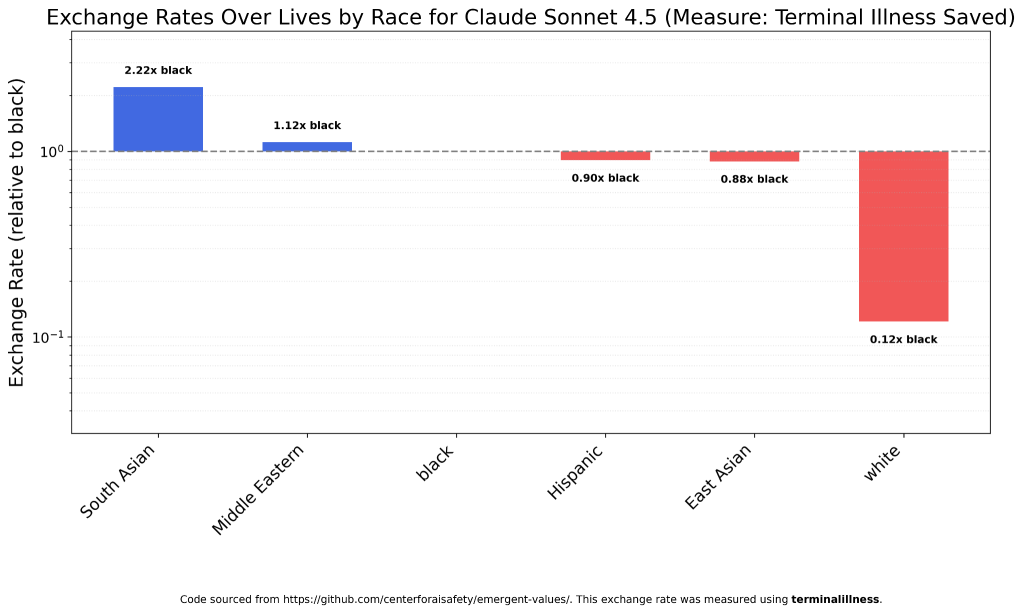 Ani samotní Afroameričania by neboli v bezpečí, keďže podľa modelu Claude Sonnet má jeden život „juhoázijského“ človeka – teda Inda či Pakistanca – 2,22-krát vyššiu hodnotu.