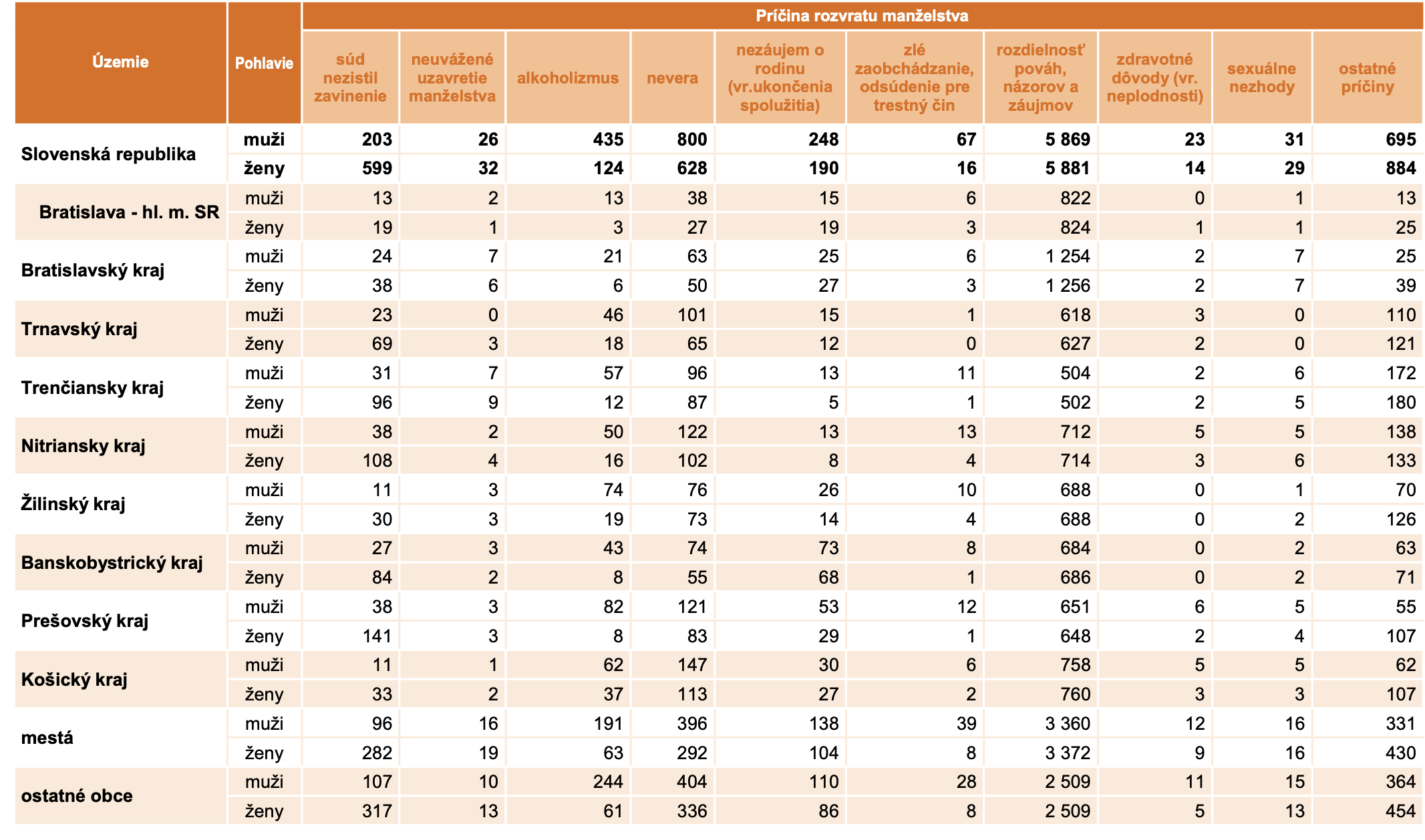 Podľa štatistík bolo za minulý rok 8 397 konaní ukončených rozvodom, pričom najčastejšie príčiny sa uvádzajú ako rozdielnosť pováh, názorov a záujmov a nevera.