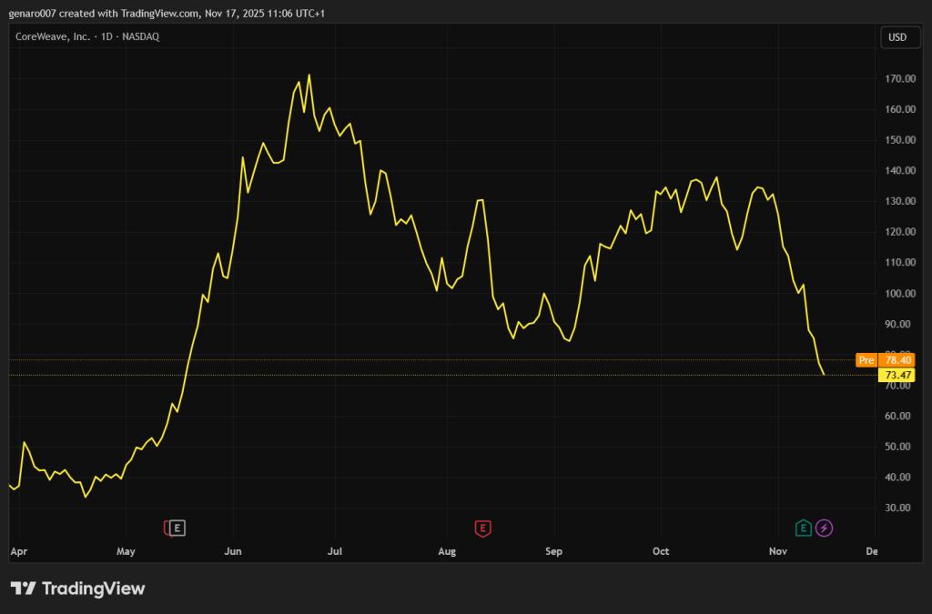 Najnovším veľmi zaujímavým faktorom, ktorý vyvolal významné otázky, bola správa spoločnosti CoreWeave. Táto spoločnosť vstúpila na burzu nedávno – v marci tohto roka. Bola to jedna z najzaujímavejších primárnych emisií akcií v ostatnom období.