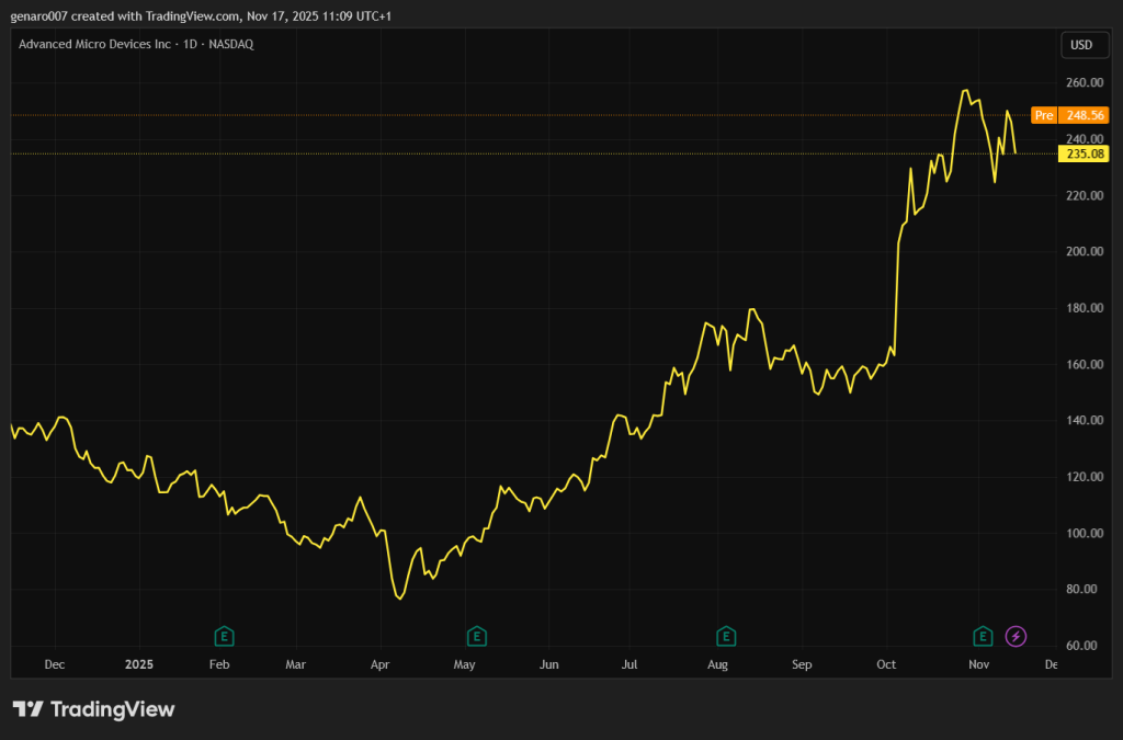 Situácia v technologickom sektore však nie je jednoznačná. Aj keď mnoho hviezd padlo, nezabránilo to napríklad akciám AMD, aby mali veľmi pozitívny týždeň. Generálny riaditeľ spoločnosti verí, že tržby budú v najbližších piatich rokoch naďalej silne rásť.