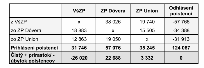 Po vyhodnotení prihlášok do jednotlivých poisťovní skonštatoval, že najviac poistencov získala súkromná zdravotná poisťovňa Dôvera, a to viac ako 22-tisíc. Naopak, najviac poistencov stratila štátna Všeobecná zdravotná poisťovňa – spolu viac ako 26-tisíc. Union hlási prírastok viac ako tritisíc poistencov.