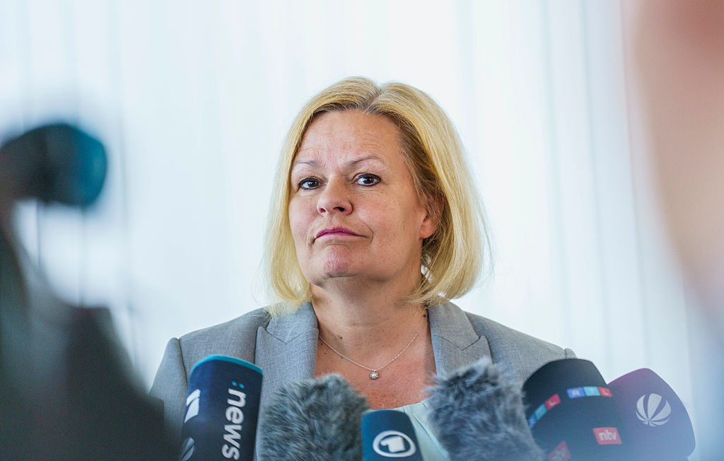 Nancy Faeserová (SPD) komentuje AfD na Spolkovom úrade kriminálnej polície po tom, ako Spolkový úrad na ochranu ústavy klasifikoval AfD ako potvrdenú pravicovo-extrémistickú stranu. Foto: Andreas Arnold/picture alliance via Getty Images