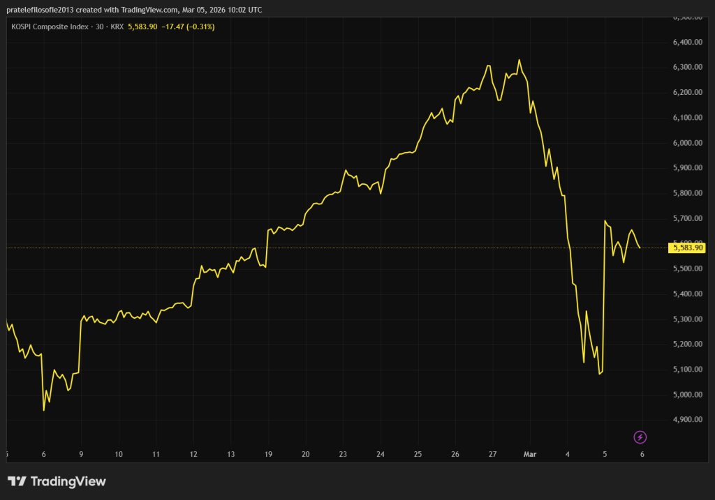 Počiatočnou reakciou na vojnu v Iráne bol jednodňový pokles o viac ako 19 percent. Nasledujúci deň však juhokórejský akciový trh prudko korigoval smerom nahor o desatinu.