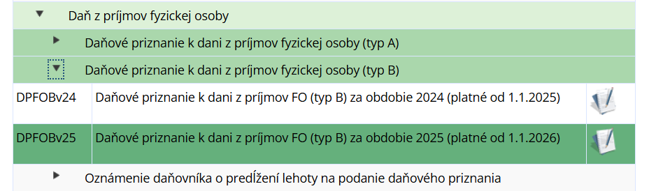 Ako každý rok, aj v tomto na portáli finančnej správy nájdete spomínané formuláre pre podanie daňového priznania pre fyzické osoby. Spozornieť musíte iba pri tom, aby išlo skutočne o tie správne – za rok 2025. Voľba písmena závisí od toho, z akých zdrojov daňovník dosahoval príjem.