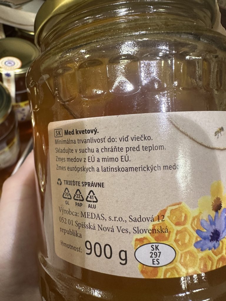 Väčšina spotrebiteľov zbystrí pozornosť, ak je na etikete označenie „zmes medov z EÚ a mimo EÚ“ – hoci to povoľuje platná európska legislatíva. „Spotrebiteľ nemá žiadnu možnosť zistiť, v akom pomere sú zastúpené zložky z jednotlivých krajín,“ vysvetľuje Majtán.