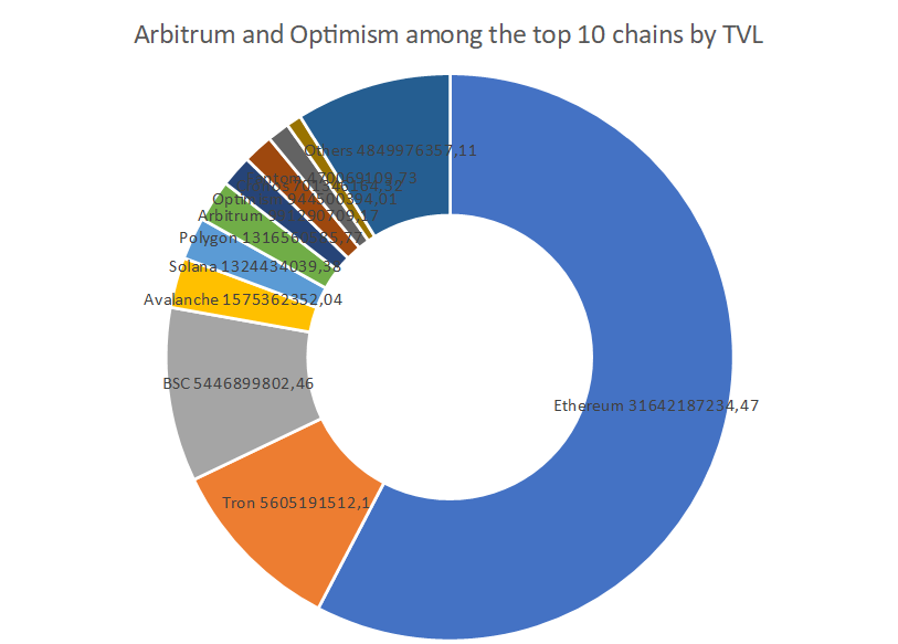 Arbitrum a Optimism medzi 10 blockchainmi s najvyššou TVL
