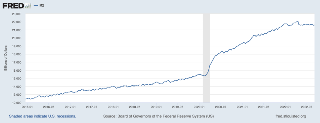Graf 4: Peňažná zásoba M2 od roku 2016 do súčasnosti. Zdroj: Rada guvernérov Fedu.