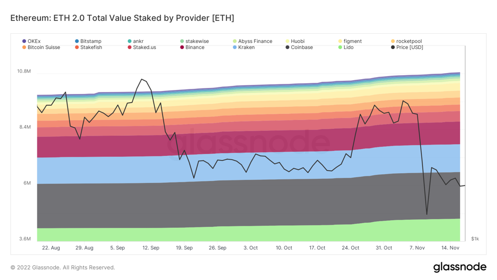 Nedávne zrútenie trhu sa kladne prejavilo na reťazci, keďže objem perpetuálnych futuritných kontraktov etherea voči doláru dosiahol nové ročné maximá. Najmä 8. novembra bol zaznamenaný celkový objem futuritných kontraktov v hodnote 79 miliárd dolárov, čím sa prekonalo 76 miliárd dolárov z 13. júna a 55 miliárd dolárov z 11. mája. Všetky tieto udalosti sa vyznačovali zvýšenou úrovňou nútených predajov, ktoré v konečnom dôsledku resetovali štruktúru trhu, keďže došlo k vyplaveniu prebytočnej finančnej páky. Pri bližšom pohľade sa objemy perpetuálnych futuritných kontraktov stabilizovali spolu s cenou v dňoch a týždňoch nasledujúcich po historických nárastoch objemu futuritných kontraktov.