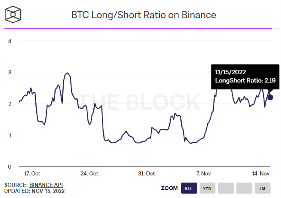 Pomer Long/Short futuritných kontraktov bitcoinu na burze Binance sa medzitýždenne znížil o 29 percent, z 3,09 na 2,19. To signalizuje pokles dlhých pozícií s finančnou pákou v pomere k nesplateným otvoreným pozíciám. Signalizuje to navyše zdravšiu štruktúru trhu po jeho obnovení. Súčasná štruktúra trhu ukazuje väčšiu koncentráciu otvoreného záujmu futuritných kontraktov v ázijsko-tichomorskom regióne, pričom Binance má zo všetkých búrz s futuritnými kontraktmi vedúce postavenie v objemoch obchodovania. To znamená, že Binance teraz ovláda 42 percent celkového otvoreného záujmu futuritných kontraktov bitcoinu (2,92 miliardy dolárov / 6,83 miliardy dolárov) a 45 percent celkového otvoreného záujmu futuritných kontraktov etherea (1,74 miliardy dolárov / 3,84 miliardy dolárov). Podobne čínske burzy OKX (1,89 miliardy dolárov / 6,83 miliardy dolárov) a Bybit (1,1 miliardy dolárov / 6,83 miliardy dolárov) predstavujú väčšinu zostávajúceho otvoreného záujmu futuritných kontraktov, pričom ovládajú 44 percent otvoreného záujmu futuritných kontraktov bitcoinu (2,99 miliardy dolárov / 6,83 miliardy dolárov) a 40 percent otvoreného záujmu futuritných kontraktov etherea (1,89 miliardy dolárov / 6,83 miliardy dolárov). To signalizuje, že ázijsko-tichomorský región zostáva kľúčovým hráčom, pokiaľ ide o zisťovanie cien a objemy obchodovania.