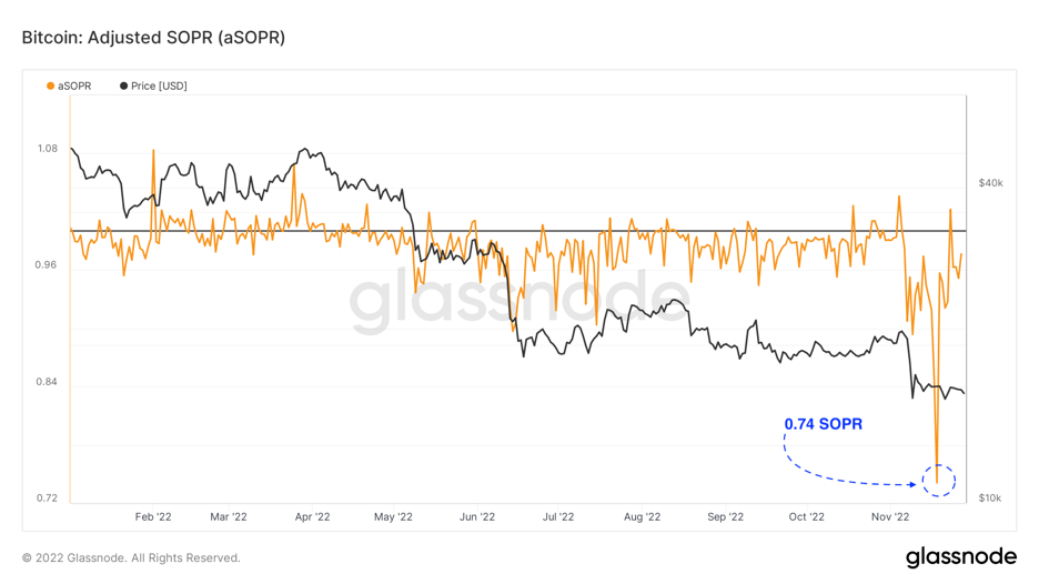 Súčasný medvedí trh bol pre investorov do bitcoinov náročný z pohľadu nerealizovaného aj realizovaného zisku a straty (PnL). Na trhoch s bitcoinmi boli v poslednom čase zaznamenané historické straty a tieto straty možno sledovať pomocou upraveného pomeru zisku z použitého výstupu (aSOPR). SOPR je indikátor trhového cyklu, ktorý využíva údaje z blockchainu BTC na analýzu toho, či bola transakcia s BTC vyrovnaná so ziskom alebo stratou. Keď hodnota SOPR stúpa nad jedna, bitcoinové transakcie sú prevažne v zisku a investori sú spokojní. Keď je hodnota SOPR pod jednotkou, investori zaznamenávajú straty. SOPR sa už viac ako šesť mesiacov nachádza v medveďom cykle, pričom jeho aktuálna hodnota je 0,74, čo je najnižšia hodnota od medvedieho trhu v rokoch 2018 až 2019, keď SOPR dosiahol historické minimum 0,72.