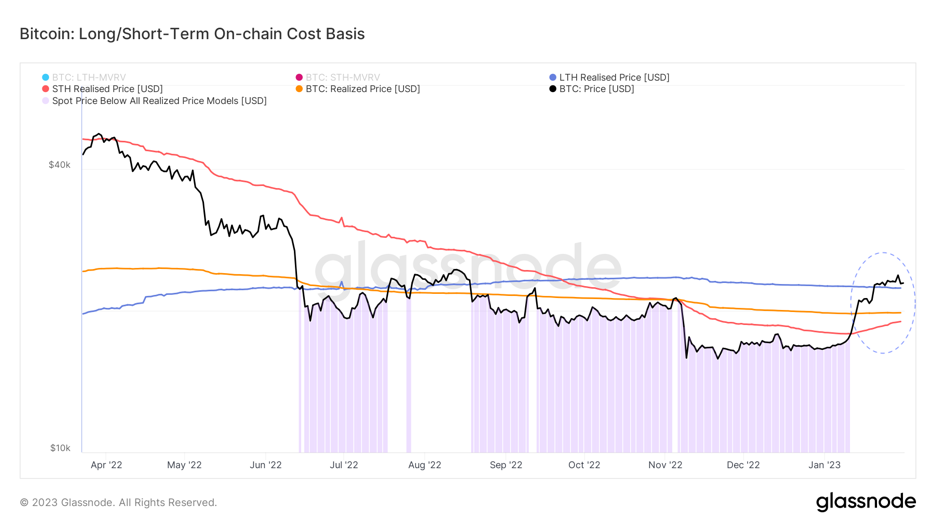 Ako už bolo spomenuté, správanie účastníkov trhu, keď sú v zisku, vo všeobecnosti dodáva ich pozíciám väčšiu istotu a tendencia ich držať by mohla byť silnejšia. Vzhľadom na prevažne medvedí sentiment na trhu, ktorý bol prítomný už mesiace, však ziskové podmienky môžu podporovať vyberanie ziskov, keďže investori si stále uvedomujú neistotu prítomnú v makroprostredí. Bez ohľadu na to priniesol január 2023 niekoľko významných zmien v dynamike trhu s bitcoinmi – predovšetkým v rámci ziskových modelov.