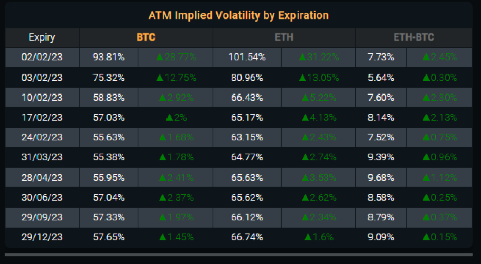 Vega (v) predstavuje mieru zmeny medzi hodnotou opcie a implikovanou volatilitou podkladového aktíva. Ide o citlivosť opcie na volatilitu. Vega naznačuje, o koľko sa zmení cena opcie pri zmene implikovanej volatility o 1 percento. Implikovaná volatilita krátkodobých opcií (front-end volatility) sa zvýšila o 33 vol, z ATM volatility v hodnote 60 vol 1. januára na 94 vol 1. februára. To signalizuje pretrvávajúci záujem o krátkodobé smerové pohyby a zvýšenú aktivitu v oblasti zabezpečenia pred zasadnutím FOMC. Po zasadnutí FOMC sa krátkodobé implikované volatility prepadli o 15 vol a realizovaná (historická) volatilita sa nenaplnila.