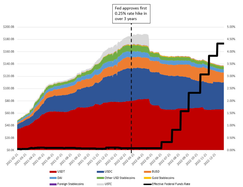 Stablecoiny založené na americkom dolári existujú v objeme takmer 140 miliárd dolárov. Tvoria viac ako 99 percent trhu so stablecoinmi. Existujú aj stablecoiny založené na EUR, CHF, GBP, MXN, AUD, JPY, HKD, CAD, ale v obehu je ich objem menej ako pol miliardy dolárov. Stablecoiny naviazané na zlato sú rozšírenejšie ako zahraničné meny, pričom v obehu sú v objeme približne 1 miliardy dolárov. Preto sa v rámci financovania zaujímame predovšetkým o stablecoiny založené na americkom dolári.