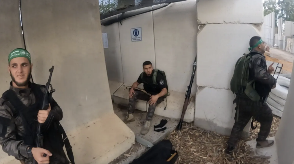 Na záberoch z kamier na hlavách útočníkov, vrátane videozáznamu z útoku na spravodajské centrum, bolo vidieť, ako ozbrojenci Hamasu – z jeho vysoko vycvičenej brigády Nukhba – v skorých ranných hodinách prerážajú barikády niekoľkých základní.