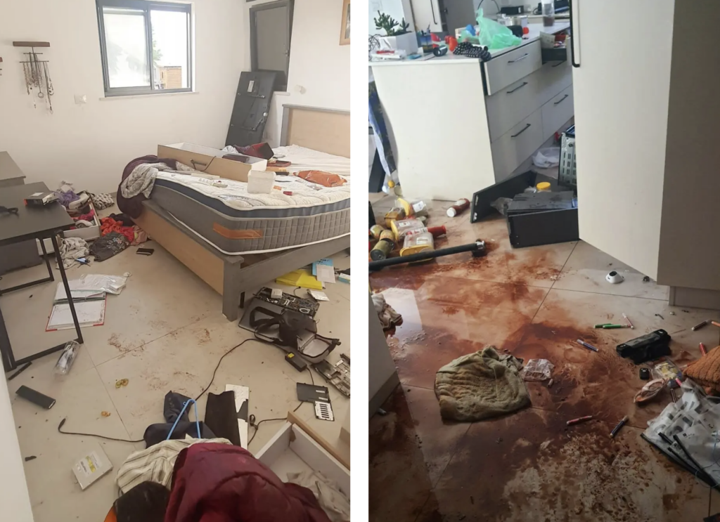 V niektorých izraelských dedinách boli obyvatelia zaživa upálení vo svojich domoch, zatiaľ čo teroristi prenasledovali civilistov na každom kroku a hľadali ľudí, ktorých by mohli zajať a zabiť. Starí rodičia, batoľatá a deväťmesačné dieťa boli zajatí a odvlečení do Gazy, niektorí z nich stlačení medzi svojimi únoscami na motocykloch.