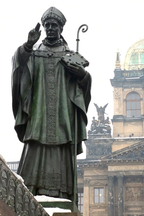 Najväčšie vrásky o zmysluplnosti umiestnenia na hlavnom sakrálno-memoriálnom pamätníku opodstatňujúcom existenciu súčasných Čechov by však mala vzbudzovať socha svätého Vojtecha-Adalberta. Přemyslovci tomuto svätcovi vyvraždili skoro celú rodinu. Ešte predtým však po dva razy, ako pražský biskup, utiekol od svojich českých ovečiek. Podľa slov jeho legendistu Canaparia, zverené stádo ho nechcelo poslúchať. Podľa toho istého autora potom, bezprostredne pred martýriom Svätca sa ho pohanskí Prusi opýtali kým je, odpovedal im, že je „rodom Sloven“ (nativitatus Sclavus), teda nie Bohemus, nie Čech.