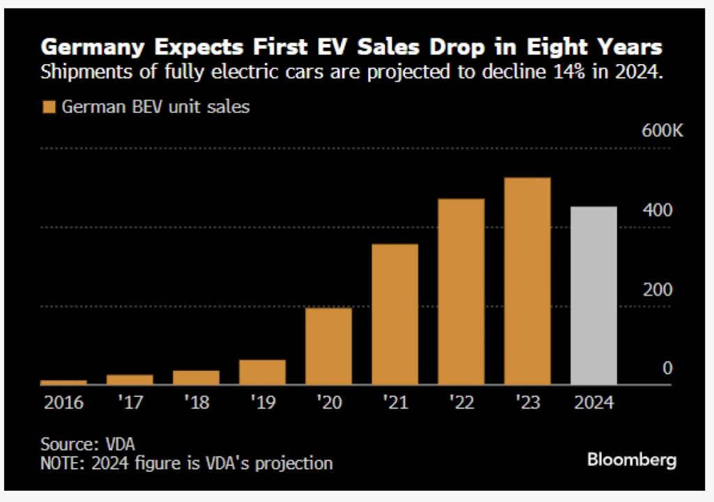 K tomu ešte vláda v Berlíne ustupuje od dotácií na podporu elektromobility. Ak pokles elektromobility v Nemecku pretrvá, miliardy eur investícií do automobilového priemyslu sa prepadnú do "čiernej diery" a krajina nebude schopná splniť prísne emisné ciele zeleného programu EÚ.