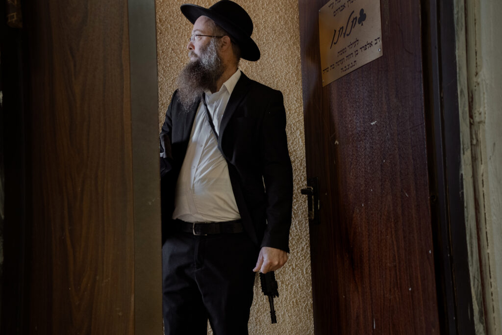 V synagóge ho muži s prešedivenými bradami a v čiernych oblekoch – všetci členovia hnutia Chabad, ultraortodoxnej sekty judaizmu – potľapkali po chrbte. Boli radi, že ho vidia. Šťastní, že vidia jeho zbraň. Bola tam jediná, ale zďaleka nie jedinečná. V tomto malom meste pri libanonských hraniciach, na ktoré v posledných mesiacoch často dopadali rakety Hizballáhu, viedol hlboký pocit zraniteľnosti Izraela k nárastu počtu ozbrojených občanov.