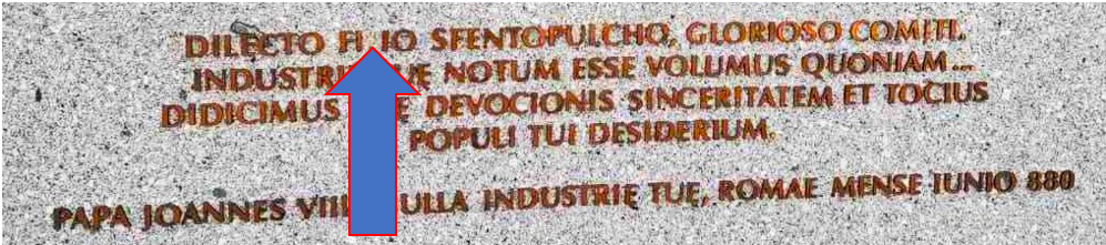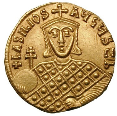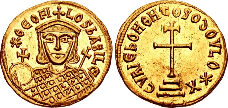 Vhodná by bola aj niektorá zlatá minca cisára Michala III. († 867) s krížom patriarchov, keďže to bol práve tento cisár, ktorý k nám vyslal svätých vierozvestov Konštantína Filozofa a jeho brata, svätého Metoda. Ako vhodnejšiu realizáciu motívu vstupného dvojkríža preto pokladám tú z mince cisára Teofila († 842), otca cisára Michala III.