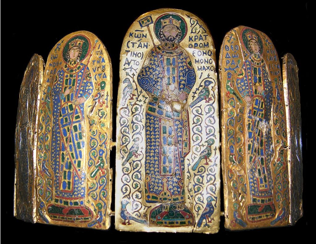 Zaujímavejšie ako to, či to bola koruna alebo nie, je to isté, čo tu už chvíľku opakujem. Totiž to, že tento vzácny byzantský klenot nenašli v Zadunajsku, ale pri Nitre. Popri iných historických i archeologických prameňoch to znovu iba umocňuje význam tohto mesta v najstarších dejinách Uhorského kráľovstva. No a pokiaľ ide o tému dvojkríža, musím dodať to, čo v komentári k výstave úplne chýba. Slovenská veda si to všimla už dávno, a síce, že na thorakione, teda nie v „mandľovom štíte“ oboch ženských postáv je znázornený dvojkríž vo funkcii ornamentu.