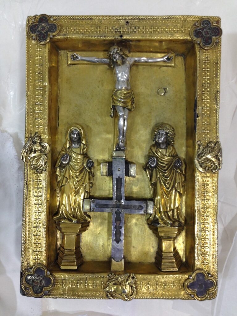 Podobne dobre utajeným artefaktom, ktorý sa síce v popisoch výstavy explicitne spomína, ale neuvidíte ho, je Nitriansky kódex (evanjeliár) z 11. storočia, inak náš najstarší kódex vôbec. Je na ňom dvojkríž s relikviou Svätého Kríža.