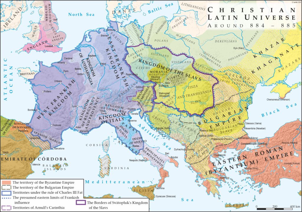 Jeho Kráľovstvo Slovenov, ako ukazuje mapa vyššie, sa rozprestieralo od stredného toku rieky Labe, k hornému toku Dnestra, od strednej Odry po ústie Drávy do Dunaja. Pod jeho zvrchovanou vládou sa nachádzali všetky relevantné politické subjekty, v ktorých sa používala praslovančina. Po prijatí dogmy o tom, že Duch Svätý pochádza z Otca i Syna a zavrhnutí staroslovienčiny ako liturgického jazyka, bola jeho ríša pevne ukotvená v kultúrnej sfére západnej Európy. Kráľovstvo Slovenov, ktoré vytvoril, sa stalo súčasťou karolovského sna o západnom kresťanskom impériu. S jediným, hoci veľmi vážnym rozdielom, ktorý spočíval v tom, že moc jeho kráľov nebola odvodená od autority cisára, ale pápeža.