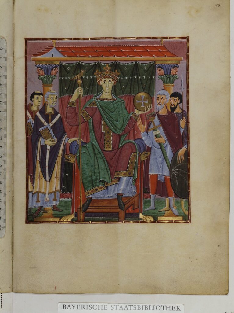 Druhá časť rodiacej sa pápežskej doktríny sa týkala ustanovovania svetskej autority – kráľa, spočívala v tom, že do svojej novej hodnosti môže byť panovník investiturovaný výlučne prostredníctvom niektorého nástupcu svätého Petra osobne, svojho arcibiskupa, alebo povereného pápežského legáta. Rozdiel medzi cisárskym a pápežským postulovaním moci sa dá ľahko pochopiť vďaka jednej z iluminácií inej vzácnej pamiatky Gertrúdinho kódexu z 11. storočia.