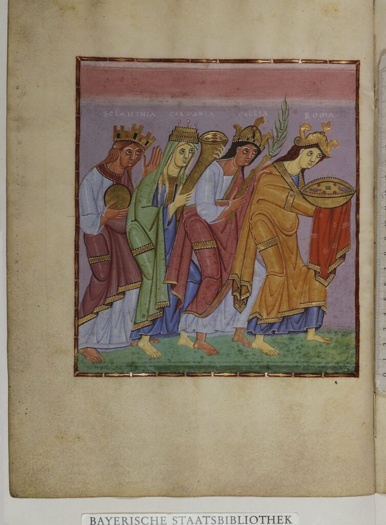 Koncept vyšších politických jednotiek kreovaných na základe prevládajúceho jazyka sa nakoniec presadil aj na sklonku ďalšieho storočia v rámci politiky Otovcov známej ako Renovatio Imperii Romanorum, teda obnovenie Rímskeho impéria. Impérium malo byť Tetrarchiou tvorenou štyrmi provinciami Galiou, Germániou, Itáliou a Sclaviniou. Veľmi dobre to ilustruje nasledujúca iluminácia z Otovho evanjeliára zhotoveného okolo roku 1000.