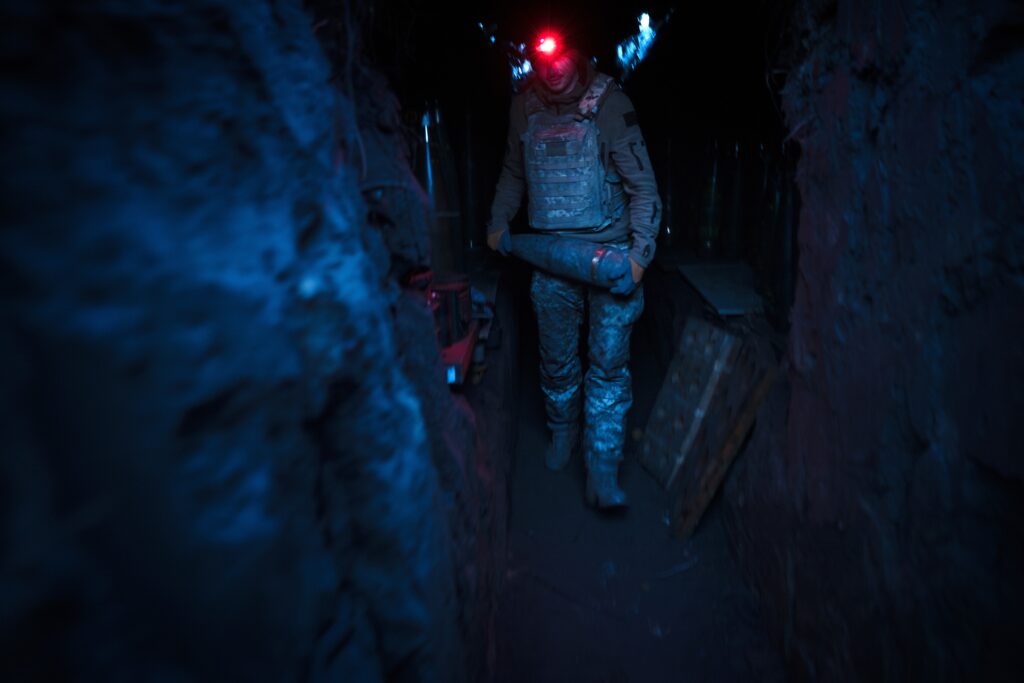 Dmytra, 35-ročného pešiaka s otrasom mozgu, nedávno v noci evakuovali na obväzisko 33. mechanizovanej brigády. Opísal štvorhodinovú zákopovú bitku, ktorá bola taká urputná, že nemohol ani zdvihnúť hlavu nad okraj zákopu a zistiť pozície útočiacich ruských jednotiek. Podľa prichádzajúcej paľby však vedel, že metodicky postupovali v malých skupinách.