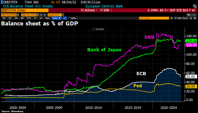 FED a ECB sa v podstate zmenili na podporovateľov vládneho dlhu, zatiaľ čo SNB uplatňuje stratégiu, ktorá pripomína skôr správu štátnych investičných fondov než tradičné centrálne bankovníctvo.