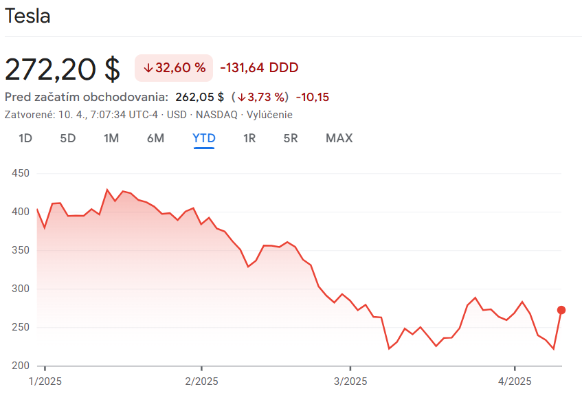 Hoci je Tesla po stredajšej názorovej piruete Trumpa opäť v zelených číslach, situácia je stále napätá ["recipročné" clá sa len odložili a plošné 10-percentné ostali v platnosti, pozn. red.] a americký prezident nevyspytateľný. Ak to bude naďalej smerovať k eskalácii obchodných sporov a hospodárske podmienky sa zhoršia, spoločnosť sa môže stať jednou z najväčších obetí.
