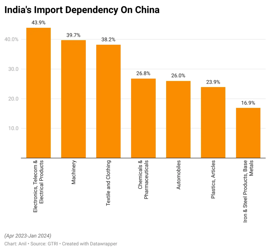 Je určitou zhodou okolností, že teroristi udreli práve v týždni, keď nové vládne údaje ukázali, že závislosť Indie od Číny, napriek diplomatickým treniciam, vzrástla. Obchodný deficit krajiny (vývoz mínus dovoz) je tesne pod 100 miliardami dolárov, čo je najvyššia hodnota v histórii. Podiel čínskych tovarov na celkovom dovoze Indie dosiahol takmer pätnásť percent. Najkritickejšie oblasti sú elektronické súčiastky a farmaceutické medziprodukty, bez ktorých domáca výroba nemôžu fungovať naplno.
