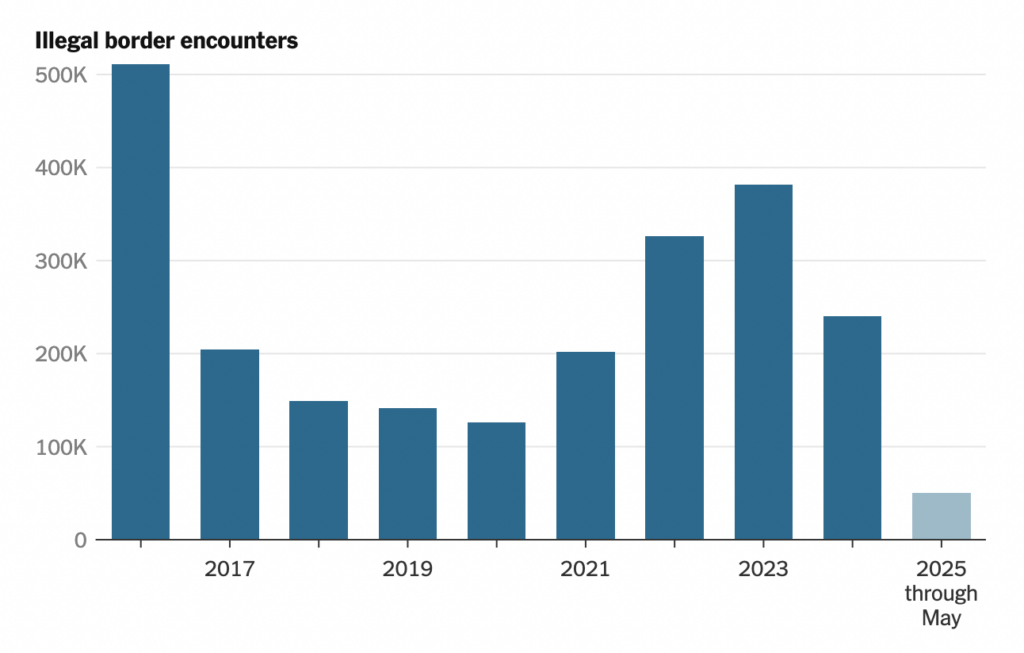 Migrácia sa po vyvrcholení pandémie opäť zvýšila, aj keď nie tak výrazne. Odvtedy však počet prichádzajúcich migrantov klesá. Podľa predbežných údajov pohraničnej agentúry EÚ Frontex sa za prvých päť mesiacov roka 2025 znížil asi o dvadsať percent, a to po prudkom poklese už v minulom roku. Zároveň pomaly stúpa aj počet vyhostení.