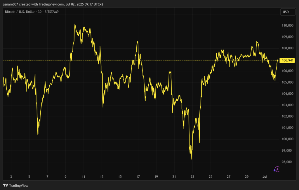 V čase písania článku dosiahla cena bitcoinu 107-tisíc dolárov. Počas týždenného obchodovania zostala prakticky stabilná, keď sa kurz bitcoinu za posledných päť dní zmenil iba o 0,09 percenta. Táto stabilita sa v posledných dňoch vníma ako ticho pred búrkou.