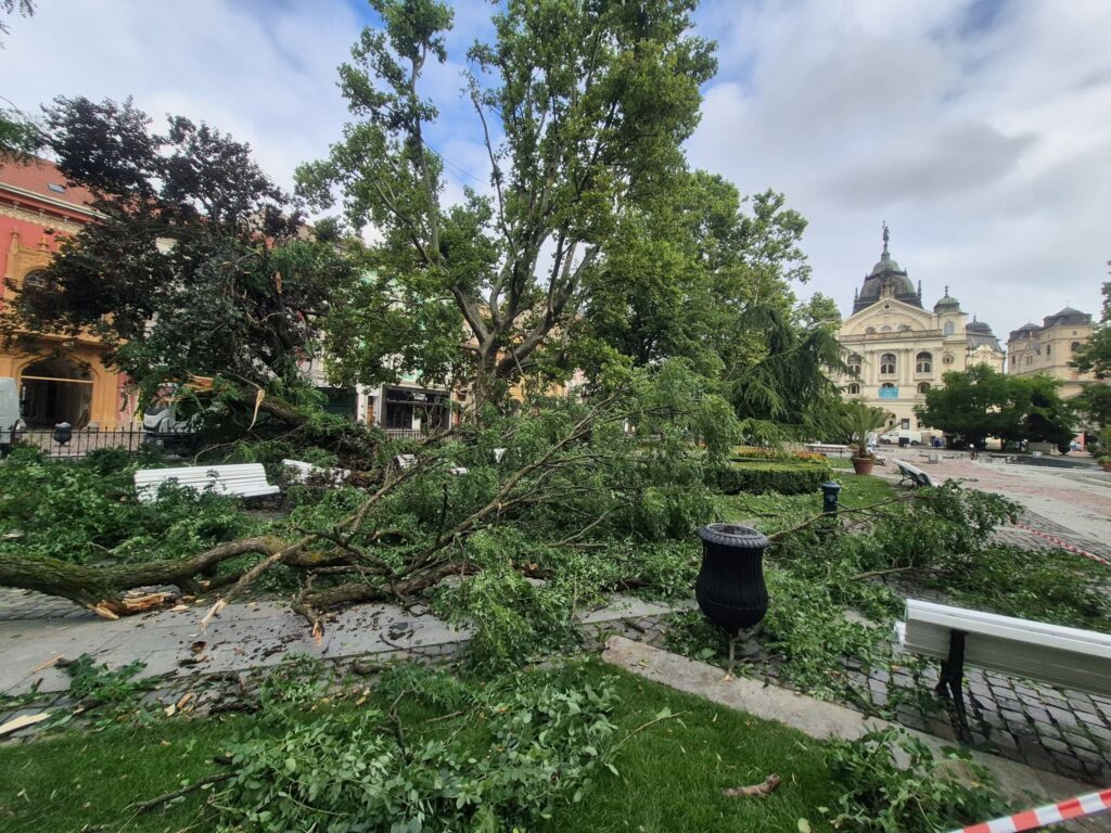 V Košiciach zasiahol spadnutý strom aj známu Spievajúcu fontánu na Hlavnom námestí.