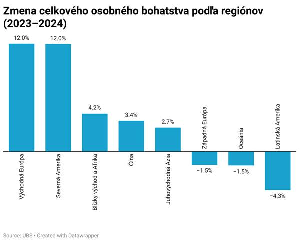 Dobrou správou je, že najvyšší nárast osobného bohatstva zaznamenala minulý rok práve východná Európa, ktorá rastom o pár stotín percenta predbehla USA. Naopak, nedarilo sa západnej Európe, kde čisté bohatstvo medziročne mierne kleslo.