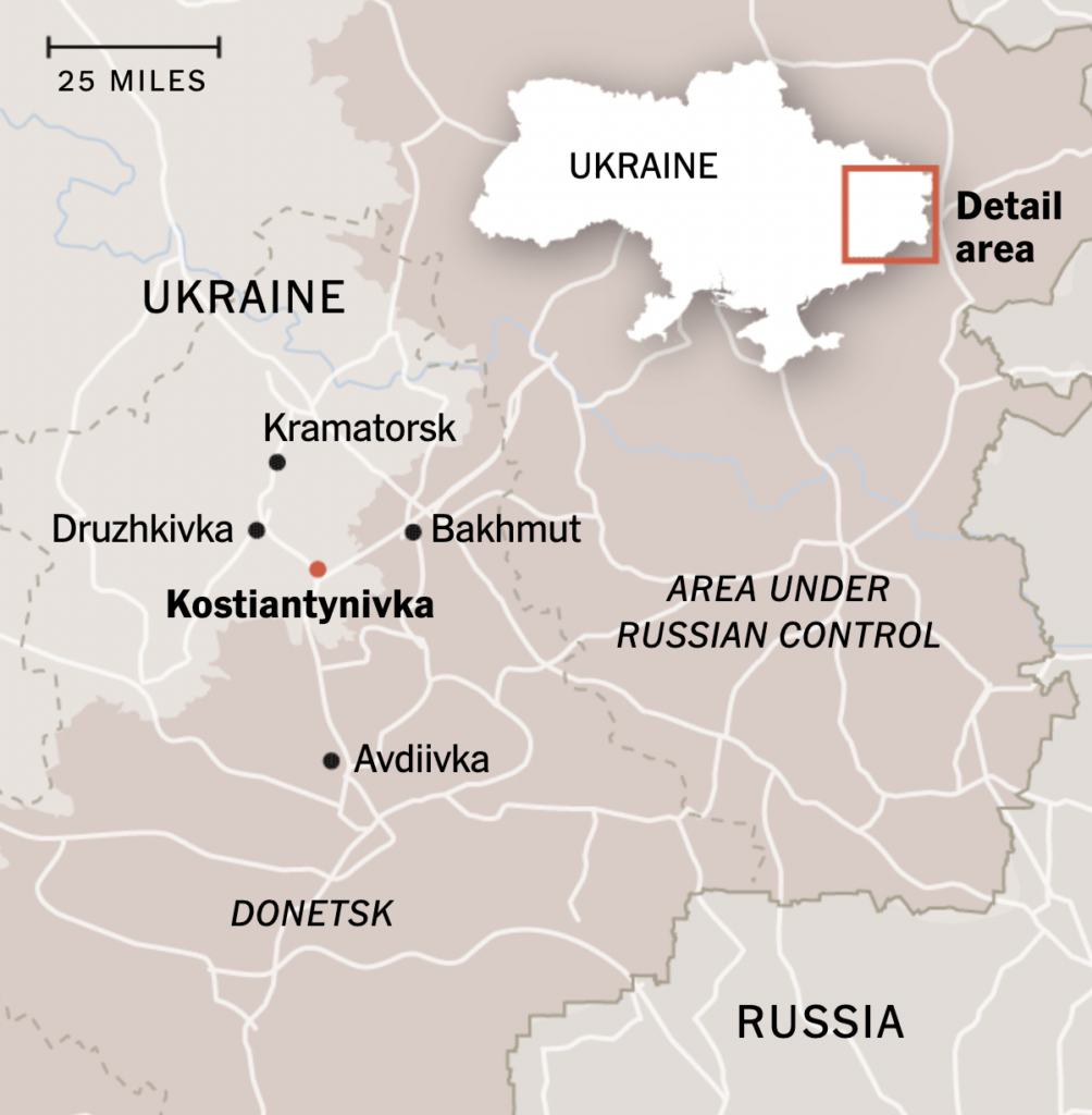 Rusko dnes ovláda viac ako dve tretiny ukrajinskej Doneckej oblasti, ktorá je hlavným centrom pozemných bojov. Okolo ukrajinských vojakov brániacich Kosťantynivku vytvorili ruské jednotky približne 16-kilometrové obkľúčenie a postupne ich zovreli z východu, juhu a západu.