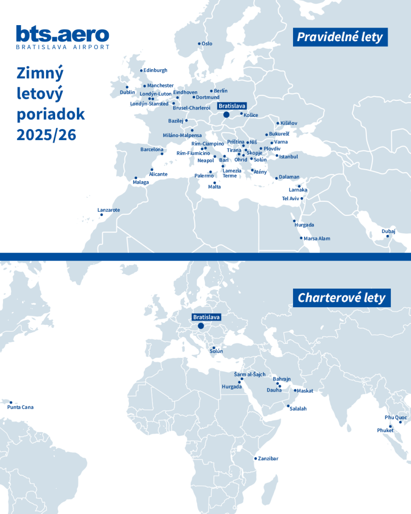 Počas zimného letového obdobia, ktoré začína platiť túto nedeľu, bude z Letiska M. R. Štefánika v Bratislave počas piatich mesiacov fungovať rekordných 49 pravidelných liniek do 42 destinácií v 22 krajinách.